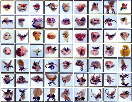 Ces étranges animaux mutants, sortes de ratés, de chimères, de monstres, constituent une série qui, à terme, sera constitué de 277 portraits, correspondants approximativment au nombre d'essais qui ont été nécessaires avant de parvenir à cloner Dolly. Il en existe actuellement 95 différents. Ce sont des biofictions, des "trans-animaux", transitoires à des post-animaux évolués. Ce sont des essais ratés, des lapsus génétiques. Leur aspect réaliste amplifient leur incongruité et nous amènent à nous interroger sur les questions de manipulations du vivant.