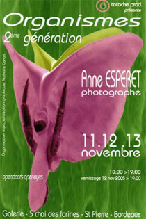Les organismes 2ème génération d'Anne Esperet, se situant entre fascination pour la science, curiosité amusée et inquiétude de la pensée, proposent des créatures hybrides et organiques. Ces bio fictions, sorte de ratés, de chimères, transitoires à des post-animaux évolués interrogent nos droits et nos devoirs par rapport aux êtres vivants, compte tenu de nos nouvelles et futures possibilités offertes par les biotechnologies...