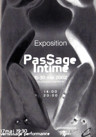 Exposition " Passage Intime" du 15 au 30 mai 2002 / Vernissage-performance vendredi 17 mai 19:30 |