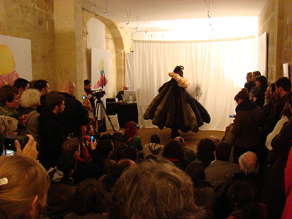 Les costumes hybrides de Julia Cardonnet puisent leur architecture mouvante du croisement singulier du stylisme, du design, de la sculpture et de la performance.