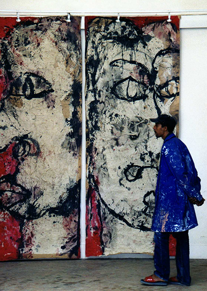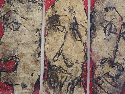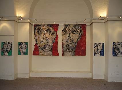 Frontalement ou de profil, pendant que sur des orbites dilatées nous fixent autant que nous les scrutons, des bouches informes détachent une sorte de rictus où laisse filtrer comme une plainte étranglée. D'évidence, ces faciès anaonymes retranchés sur une solitude qui renvoie à la nôtre, n'irradient pas le bonheur, mais aucune désespérance non plus.